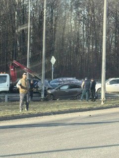 ДТП у эстакады на Новодачной. Машина залетела на отбойник.
